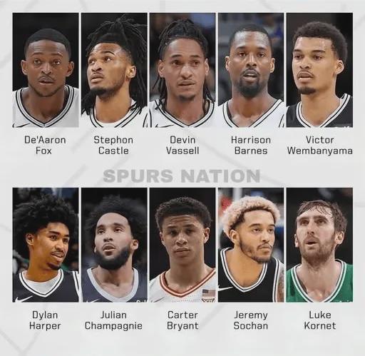 目前球队几大外线火力点的三分数据为:瓦塞尔三分命中率35.4%(勉强合格)、巴恩斯39.3%(非常出色)、卡斯尔34.6%(勉强合格)、尚帕尼30.4%(拉胯水平)、文班亚马28.6%(极其拉胯)、凯尔登-约翰逊46.7%(手感发烫)、哈珀35.7%(勉强合格)、麦克劳克林28.6%(极其拉胯)。
